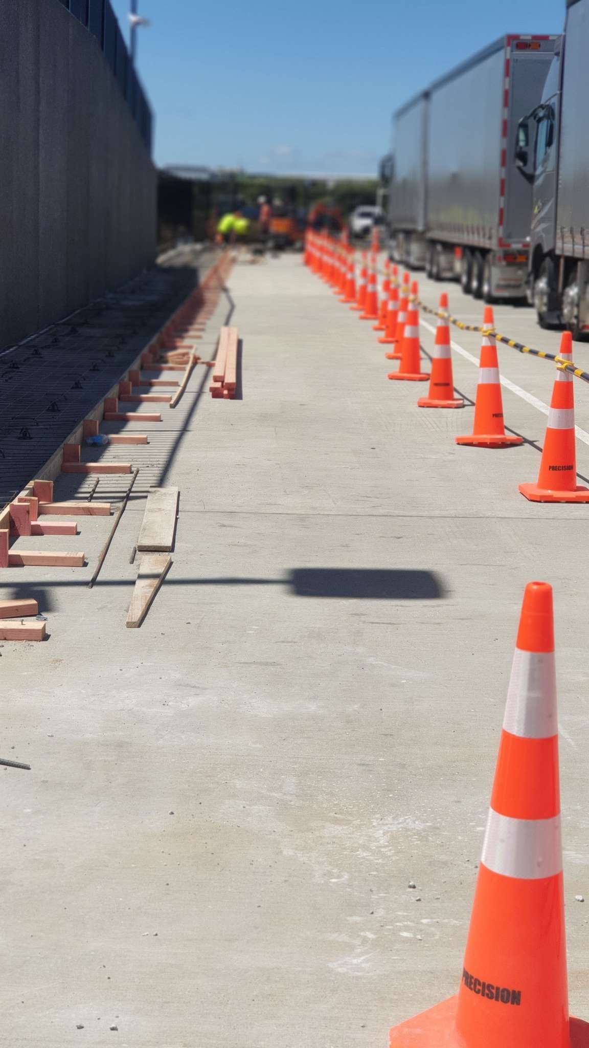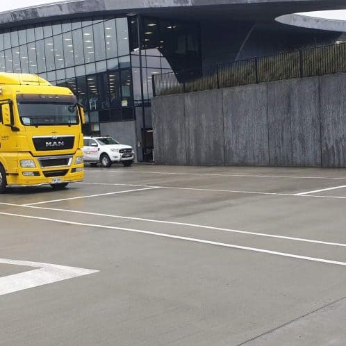 The project involved bulk excavation, drainage, kerbing, concrete pavement works, fencing, landscaping, and shade-structure installation, coordinated within a live operational environment surrounded by 24/7 freight movements.