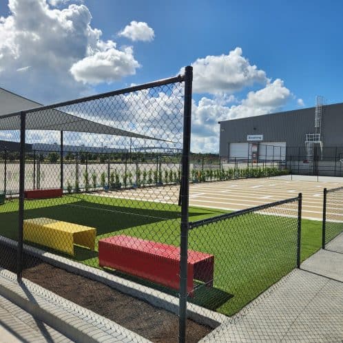 The completed facility now features multi-use turf zones, court markings, seating, and shade sails – a practical yet uplifting addition that supports Foodstuffs’ focus on staff wellbeing and sustainability at its north island distribution hub.