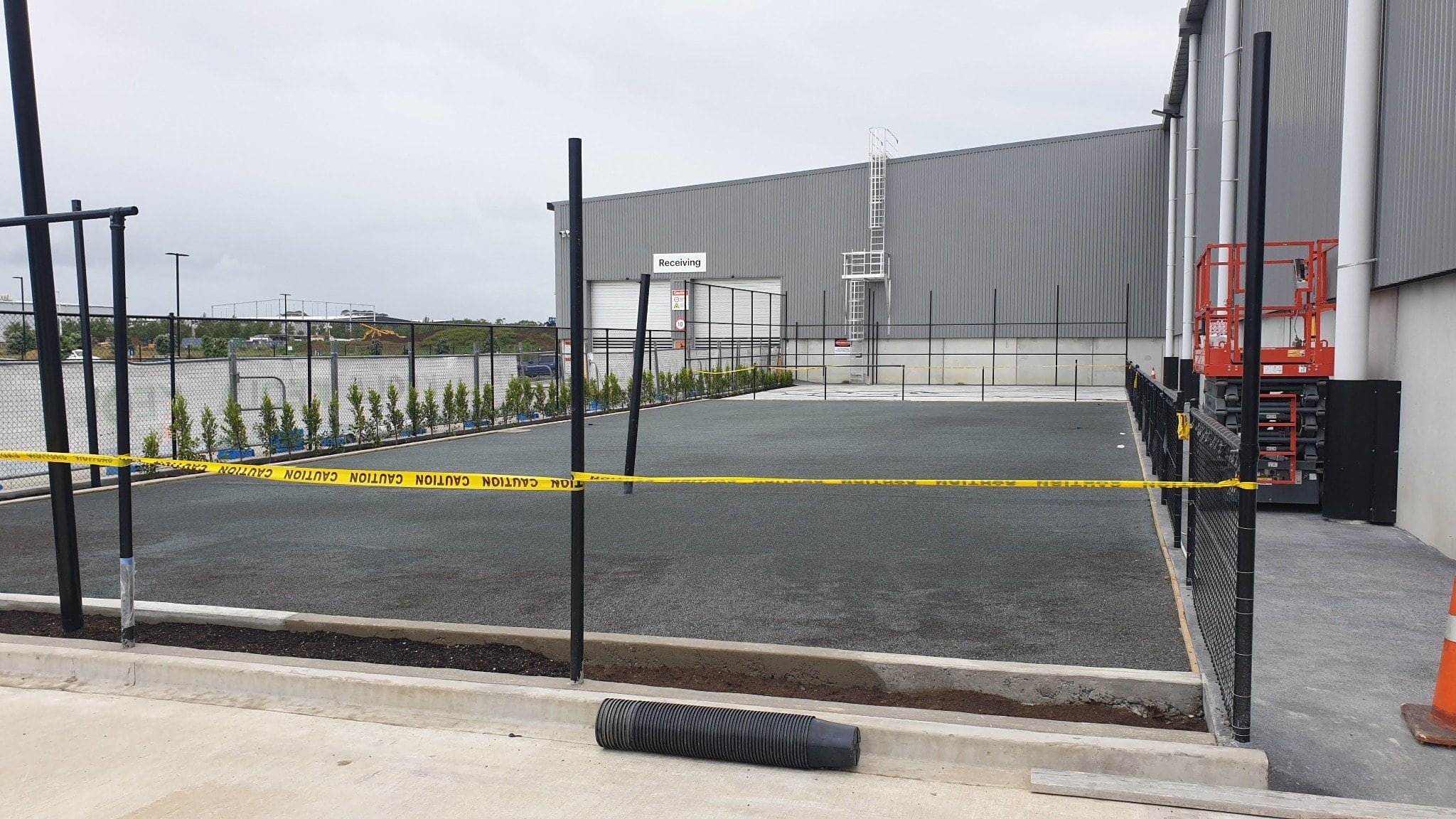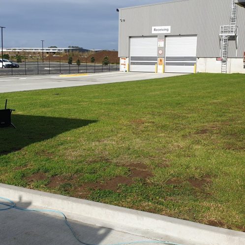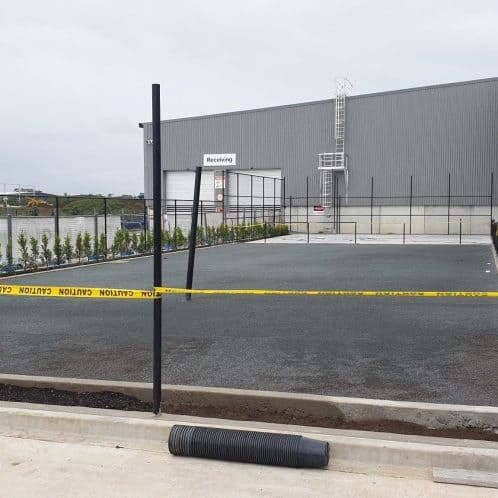 Construction of a new outdoor activity yard for Foodstuffs North Island including drainage, concrete works, fencing, turf, and landscaping within an active logistics hub at Auckland Airport.