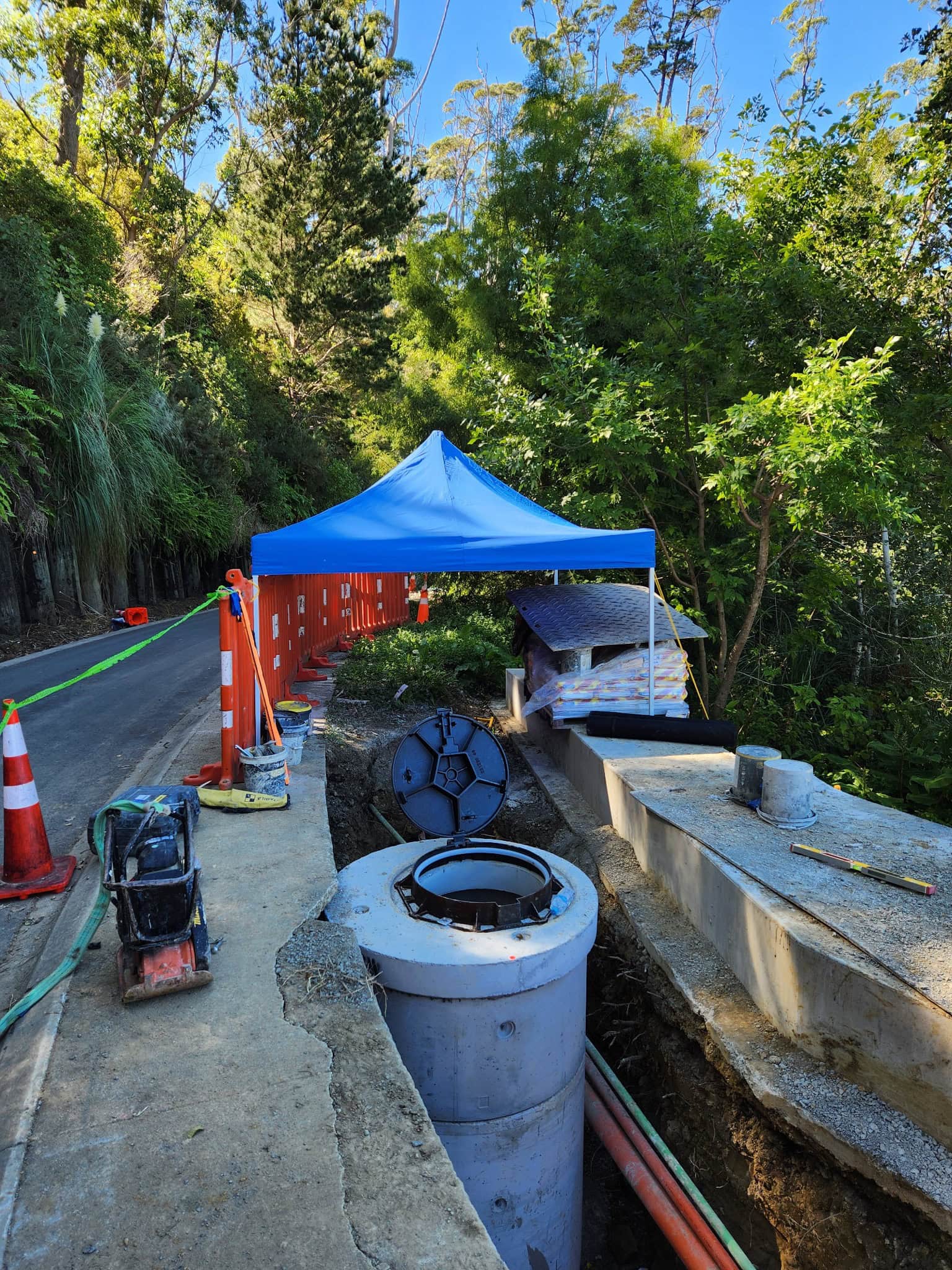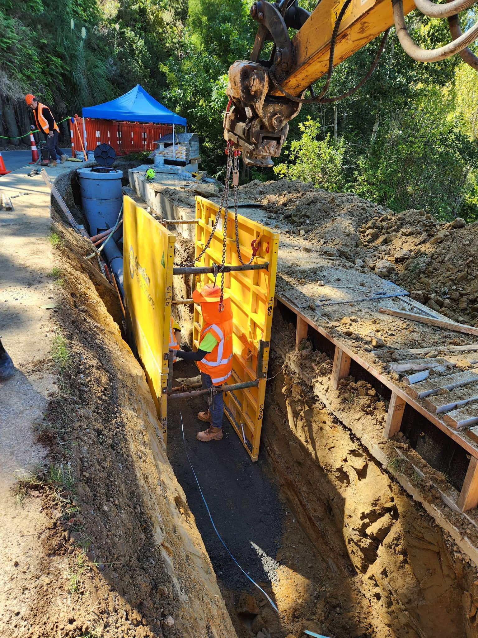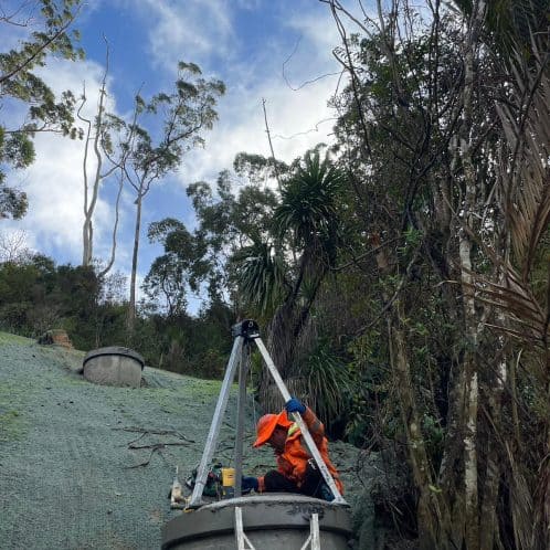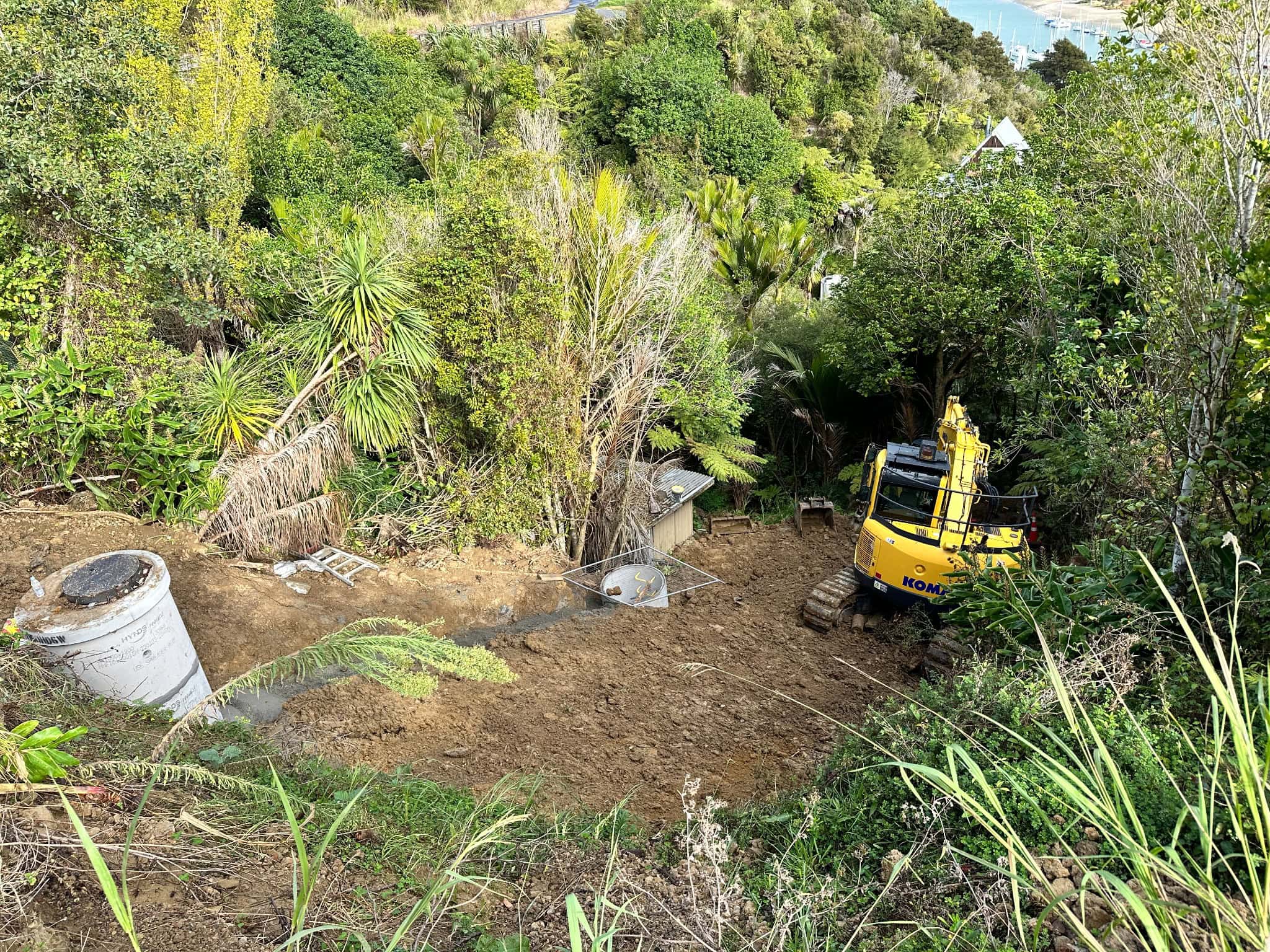 - The site was extremely constrained: steep slopes, limited working width, minimal allowance for staging or spoil storage, and adjacent vegetation/native bush to protect.