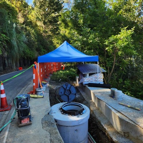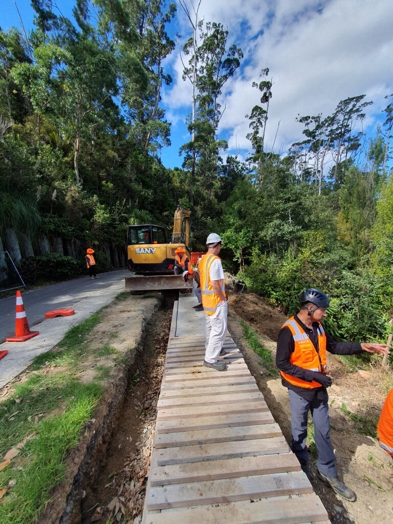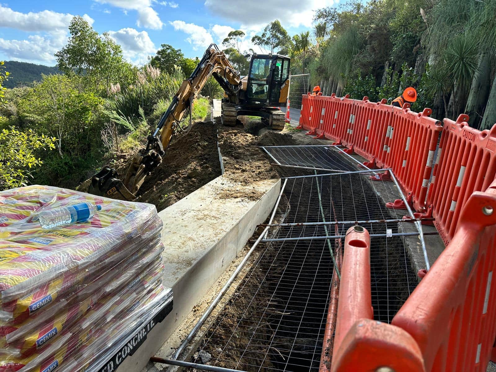 We were engaged by Fulton Hogan to provide specialist civil, drainage, and slope stabilisation works after a significant slip on a narrow street in Whangaparāoa. Being subcontracted by New Zealand’s largest civil and roading contractor was a major vote of confidence in our capability and trustworthiness.